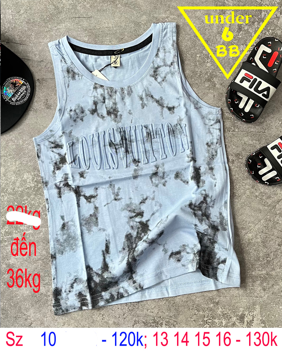 Áo thun sát nách bé trai in chữ nổi phối màu loang phong cách cá tính cho bé đi chơi , đi học
