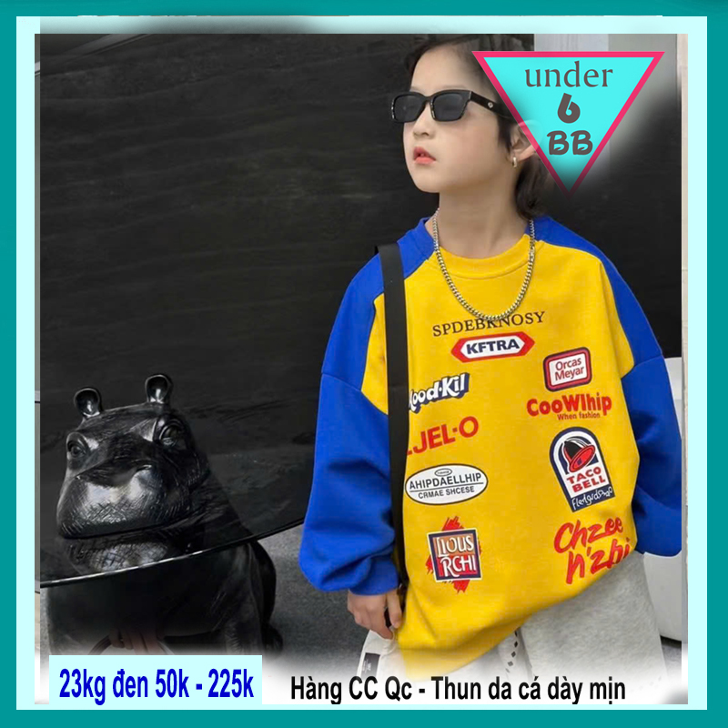 Áo thun tay dài bé trai cao cấp cotton dày dặn in họa tiết logo cá tính cho bé đi chơi , đi học