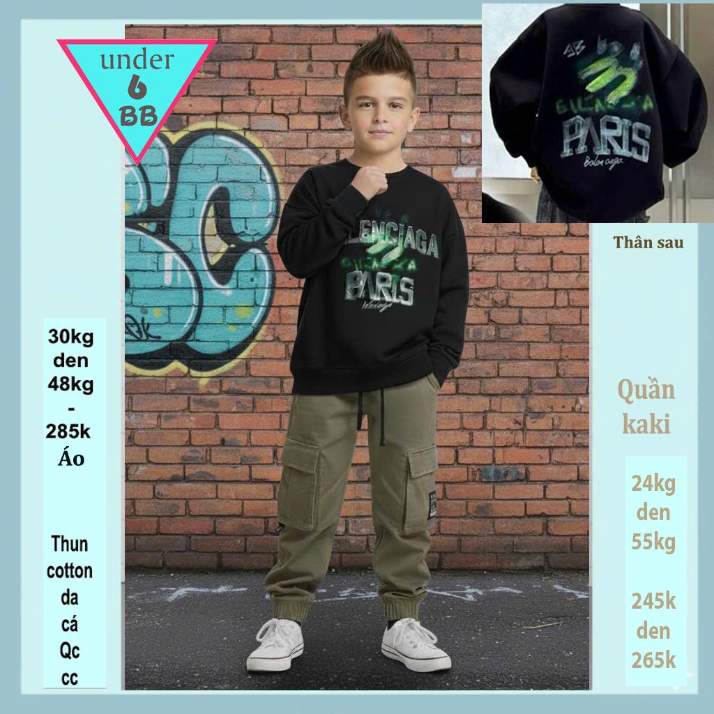 - Áo thun bé trai cho bé 30kg đến 48kg