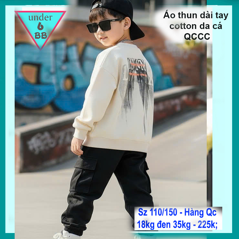 Áo thun tay dài bé trai cotton da cá in chữ phong cách cá tính cho bé đi chơi , đi học