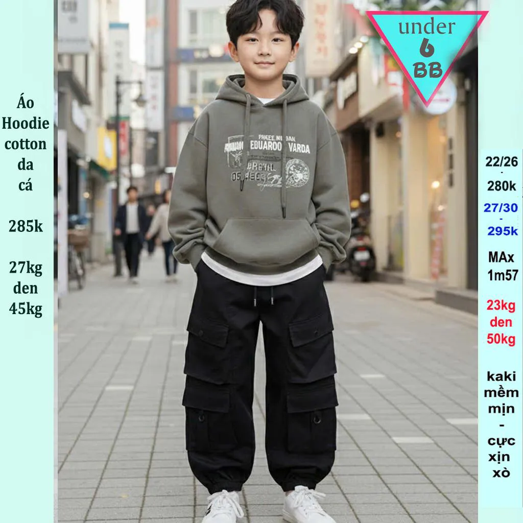 Áo thun bé trai tay dài có nón ( Hoodie - thun da cá dày dặn ) in chữ phong cách cá tính cho bé yêu diện đi du lịch