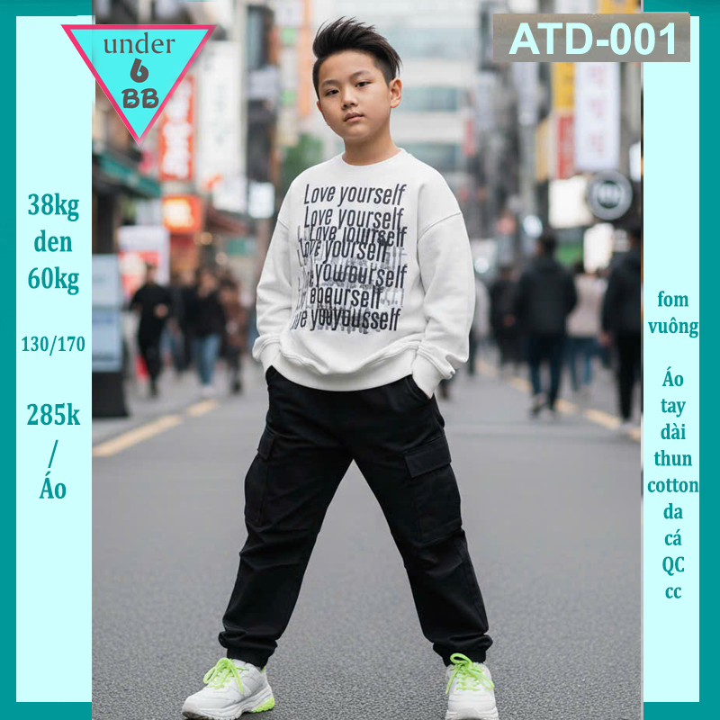 Áo thun bé trai tay dài ( ATD - 001 ) in chữ phong cách thời trang cá tính cho bé đi chơi , du lịch