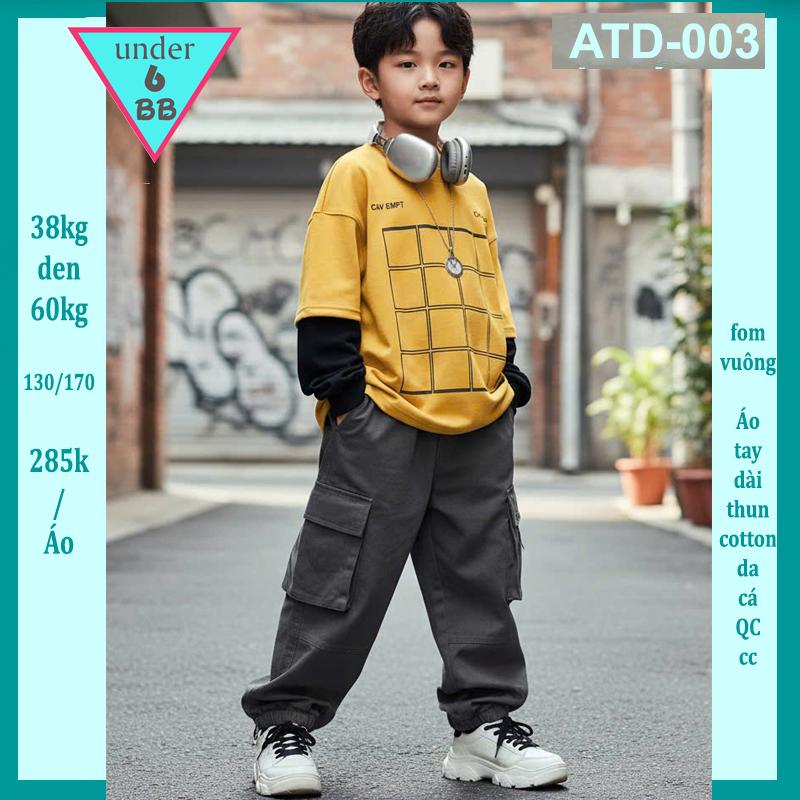 Áo thun bé trai tay dài ( ATD - 003 ) in caro phong cách cá tính cho bé đi chơi , đi du lịch