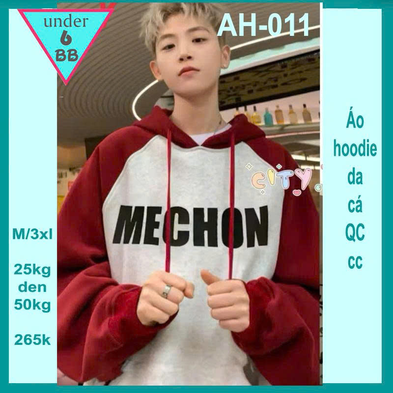 Áo thun bé trai tay dài có nón ( AH - 011) in chữ MECHON phong cách hàn quốc cá tính cho bé diện đi chơi , đi học