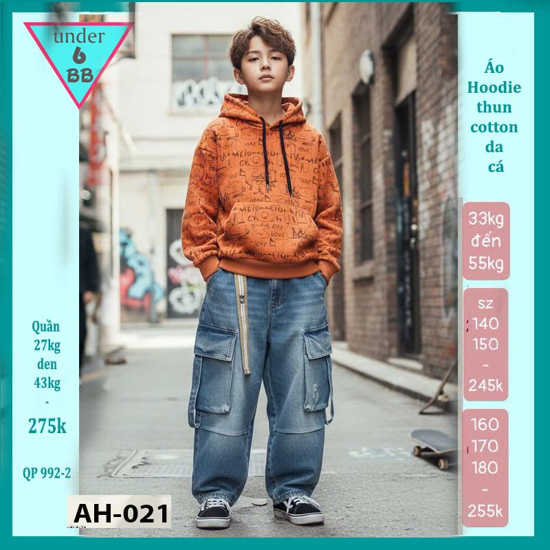 Áo thun bé trai tay dài có nón ( Hoddie ) in full chữ phong cách cá tính cho bé diện đi chơi , du lịch