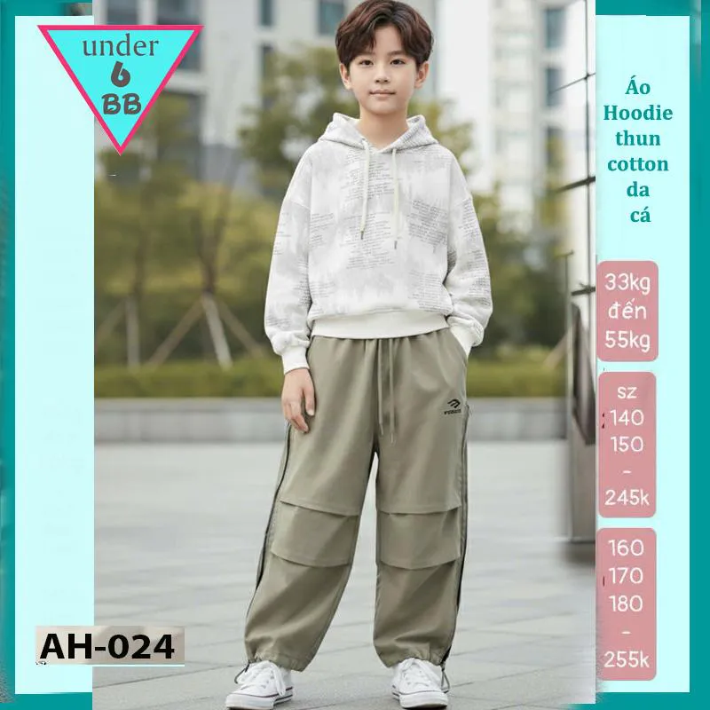 Áo thun bé trai tay dài có nón ( Hoddie ) in full chữ phong cách cá tính cho bé diện đi chơi , du lịch