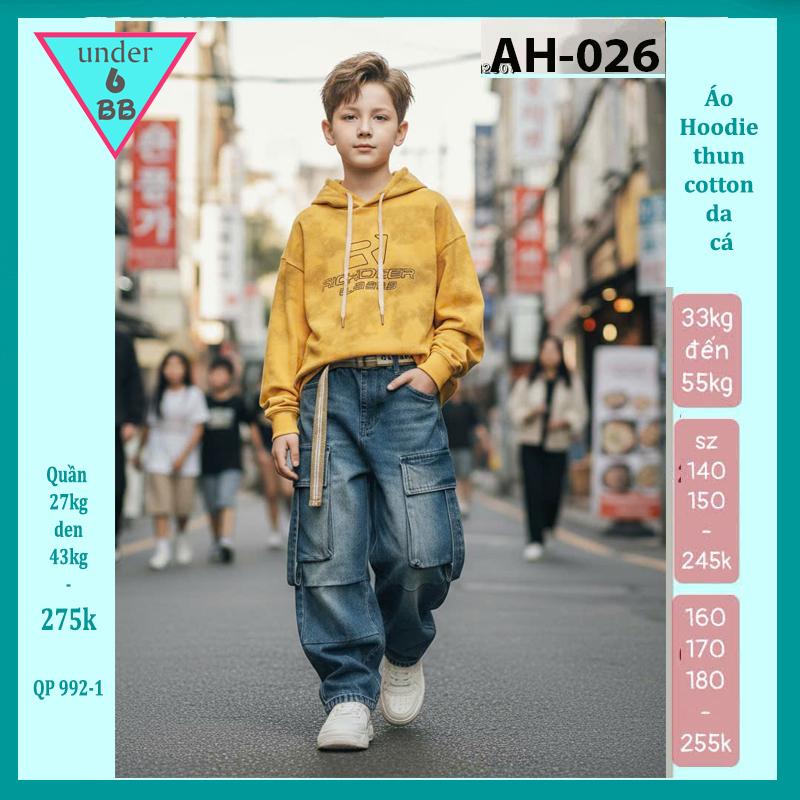 Áo thun bé trai tay dài có nón ( Hoddie ) in chữ phối màu loang phong cách cá tính cho bé diện đi chơi , du lịch