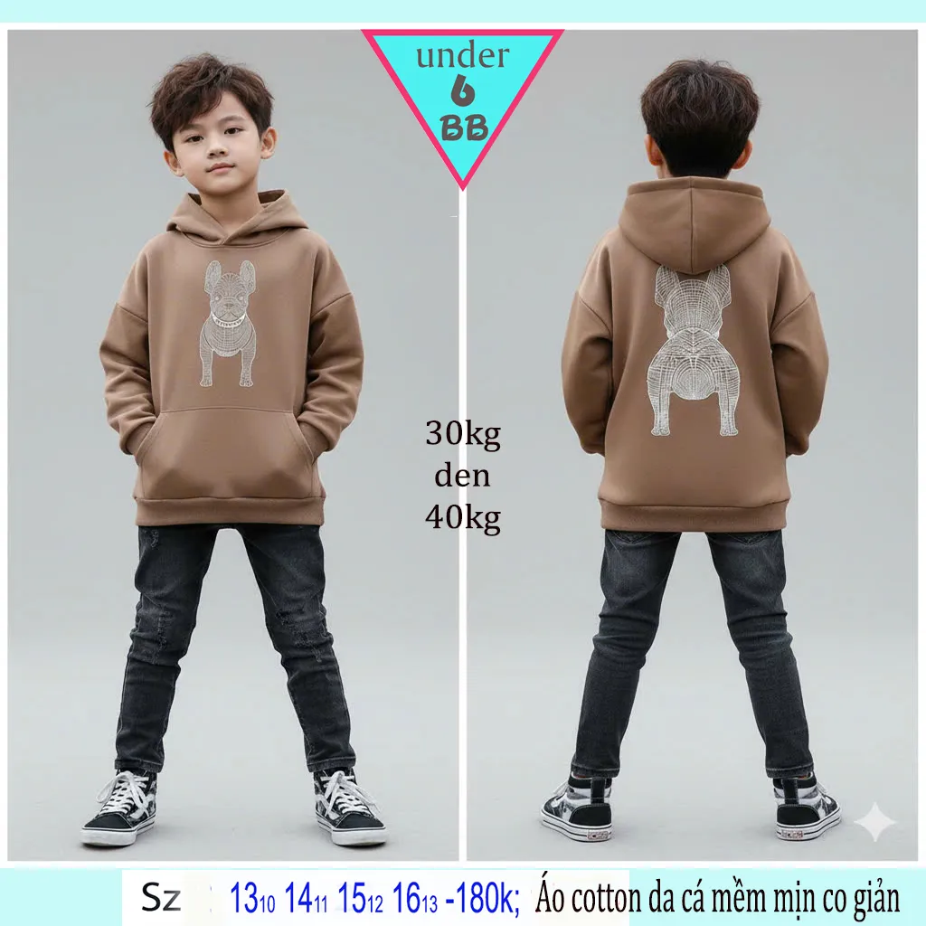 Áo thun bé trai tay dài có nón in Chú Chó Lưới phong cách cá tính siêu ngầu cho bé đi chơi , du lịch
