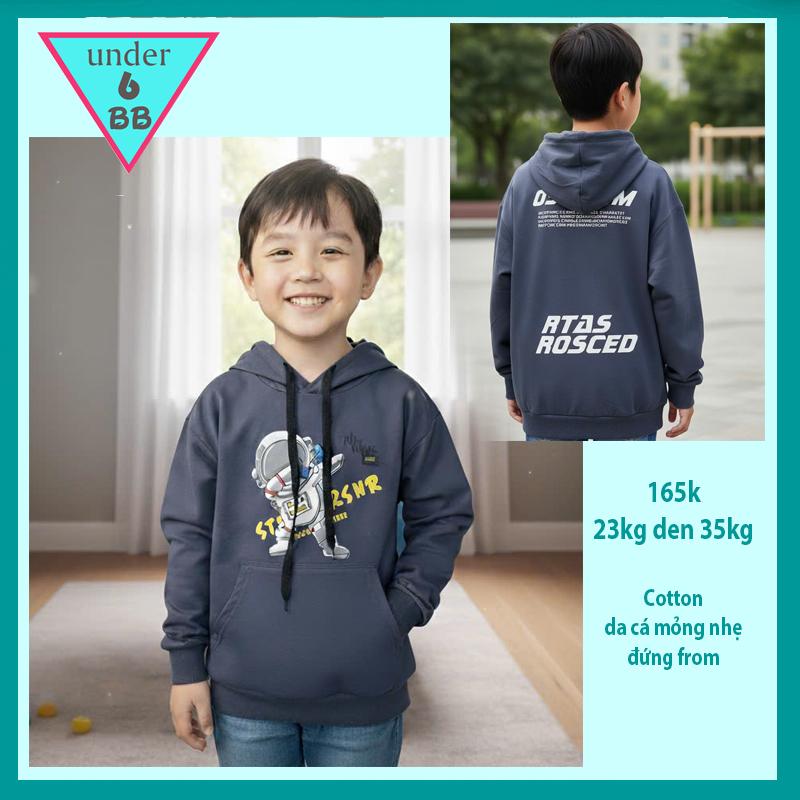 Áo thun bé trai tay dài có nón (Hoodie ) in hình Phi Hành Gia phong cách cá tính cho bé đi chơi , du lịch