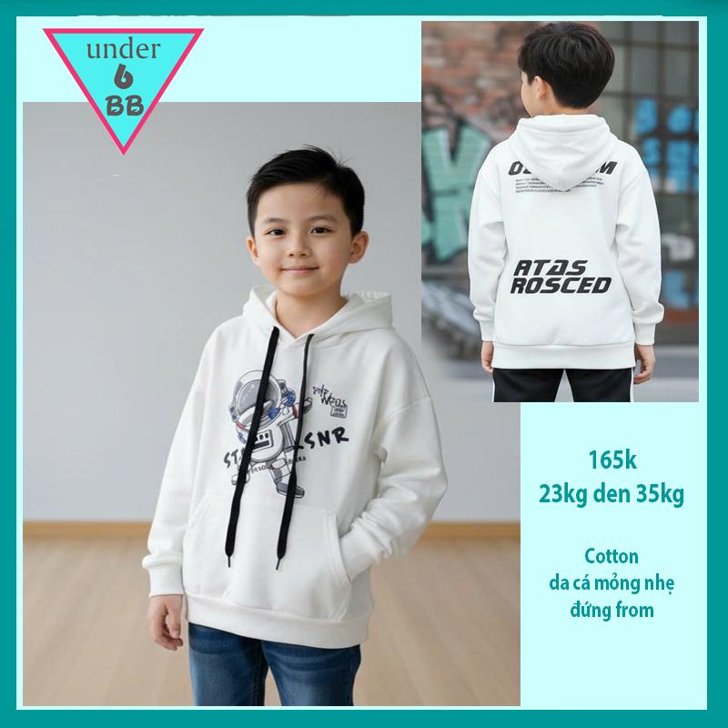 Áo thun bé trai tay dài có nón (Hoodie ) in hình Phi Hành Gia phong cách cá tính cho bé đi chơi , du lịch