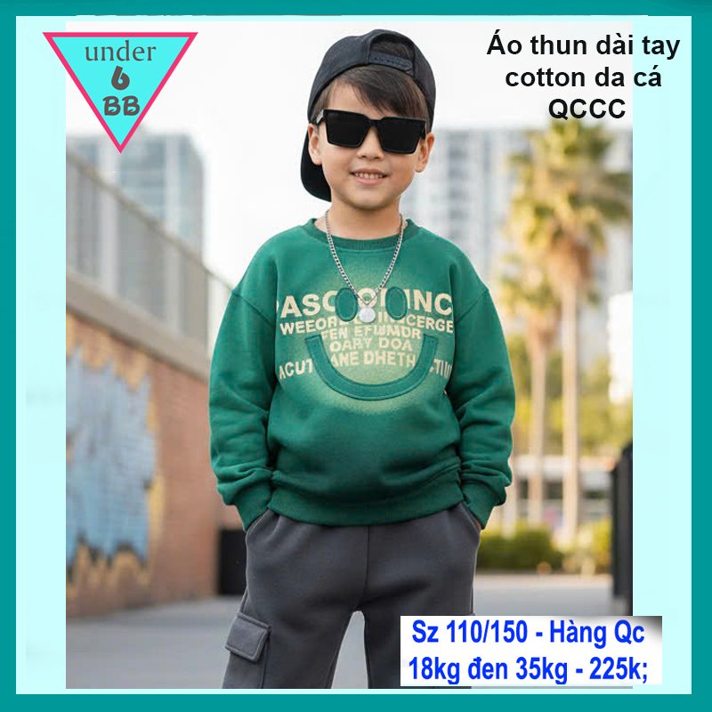 Áo thun tay dài bé trai cotton da cá in họa tiết mặc cười phong cách cá tính cho bé đi chơi , đi học