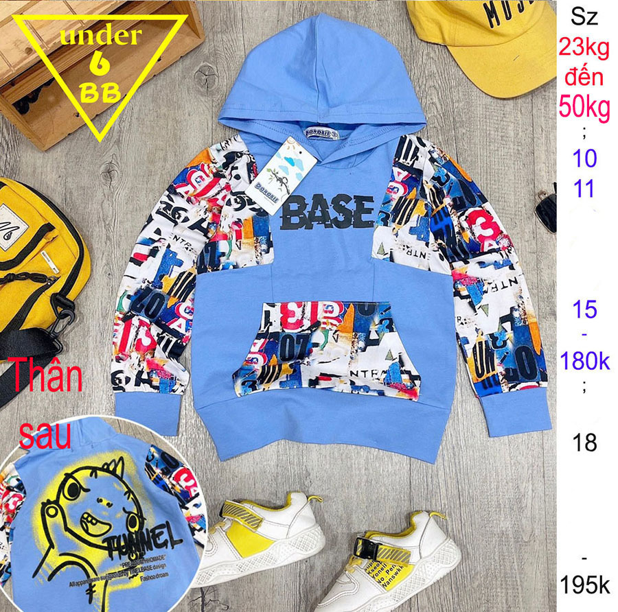 Áo thun tay dài bé trai hoodie in chữ phong cách cá tính siêu ngầu cho bé trai đi chơi , đi học