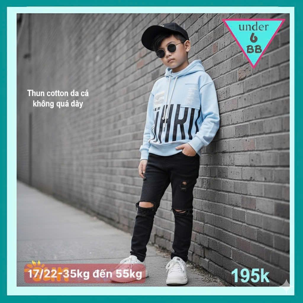 Áo thun bé trai tay dài có nón (Hoodie ) in chữ mang phong cách thời trang cá tính cho bé đi chơi , du lịch