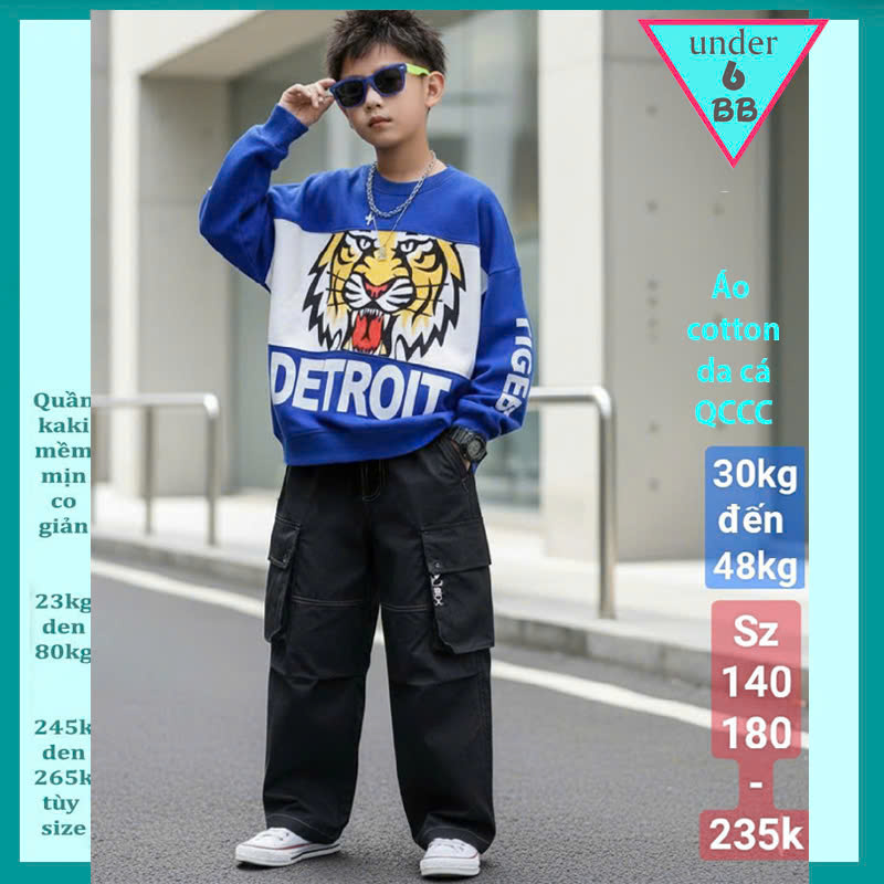 - Áo thun bé trai cho bé 30kg đến 50kg