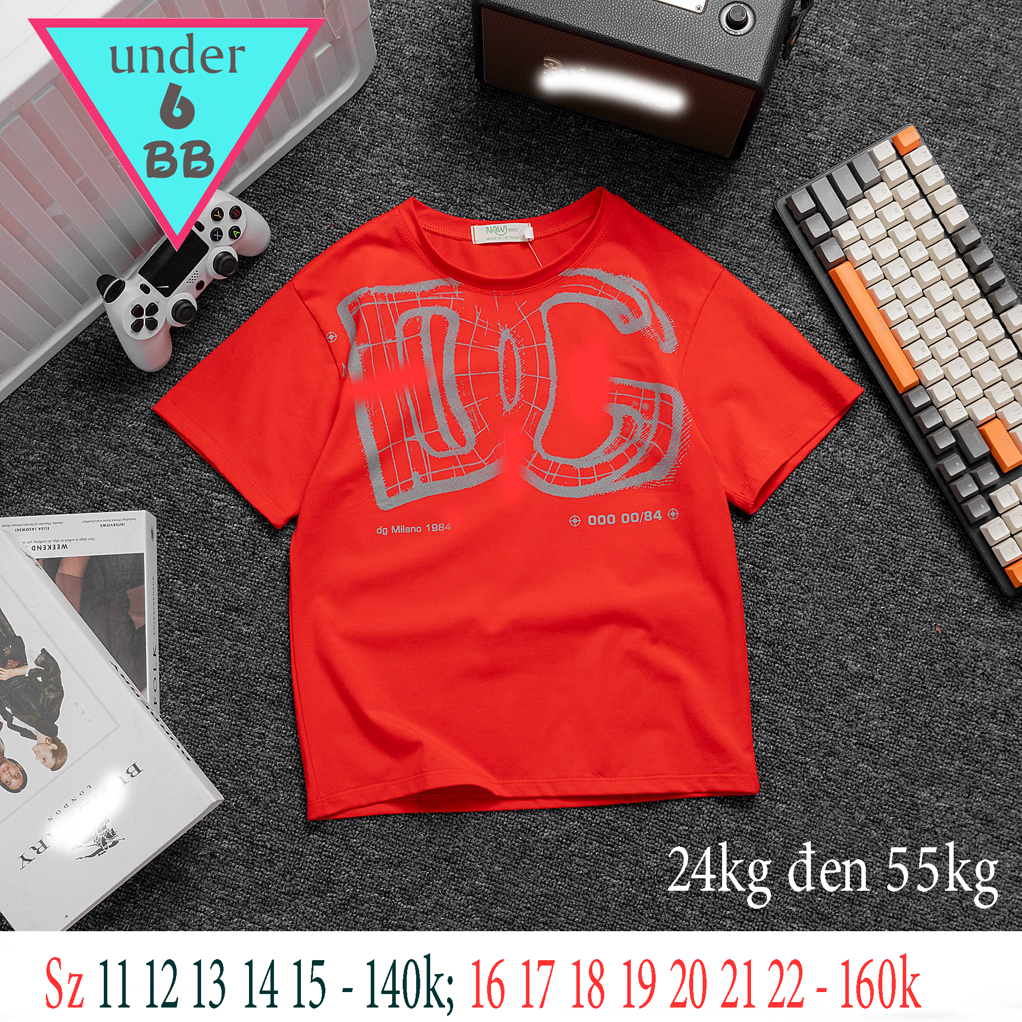 - Áo thun bé trai cho bé 22kg đến 55kg