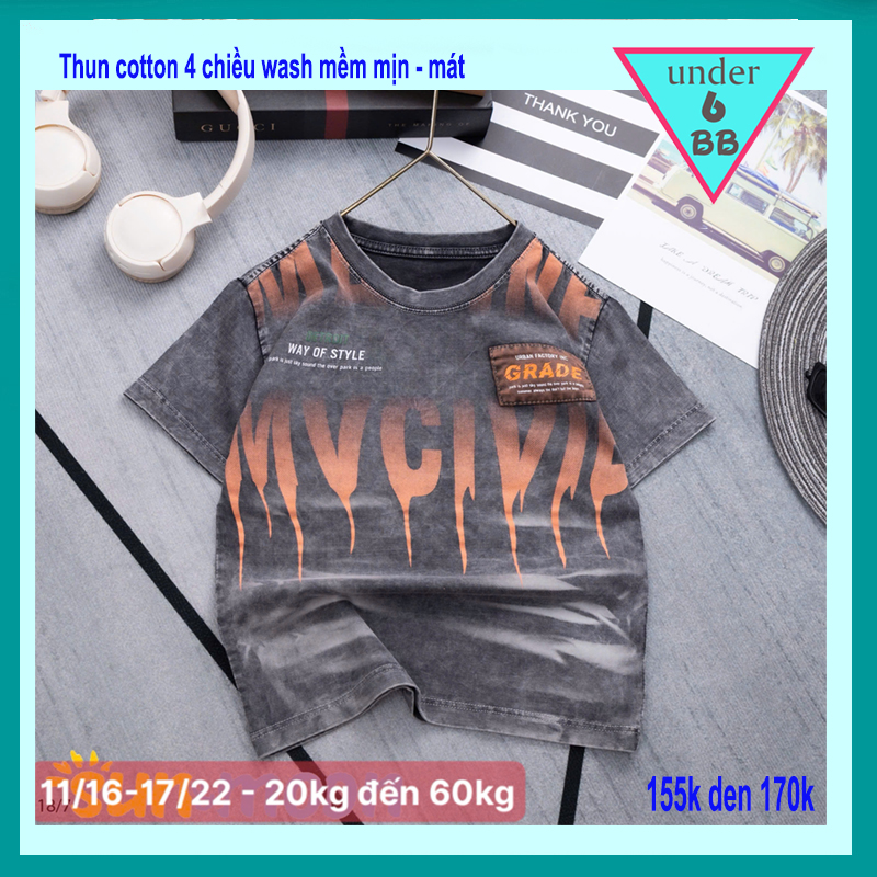 Áo thun bé trai cá tính ( vải wash ) in chữ mang phong cách thời trang cá tính siêu ngầu cho bé diện đi chơi , du lịch