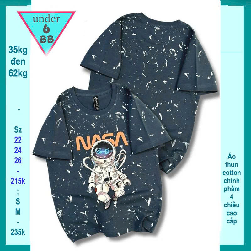 Áo thun bé trai cotton in họa tiết hình Phi Hành Gia phối vệt sơn phong cách cá tính cho bé đi chơi , đi học
