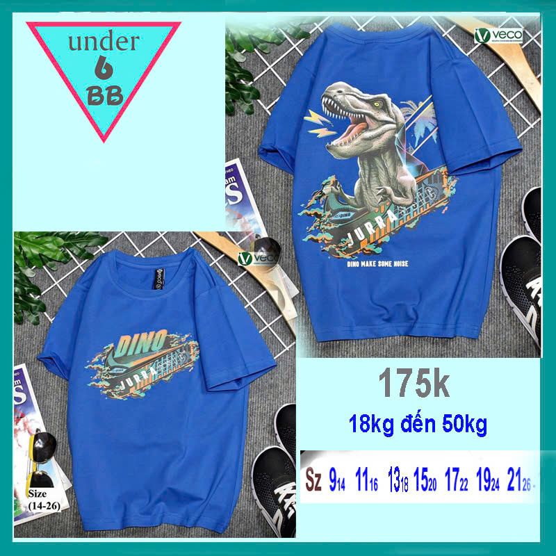 Áo thun bé trai cotton tay ngắn in hình Khủng Long Dino cho bé đi chơi , đi học