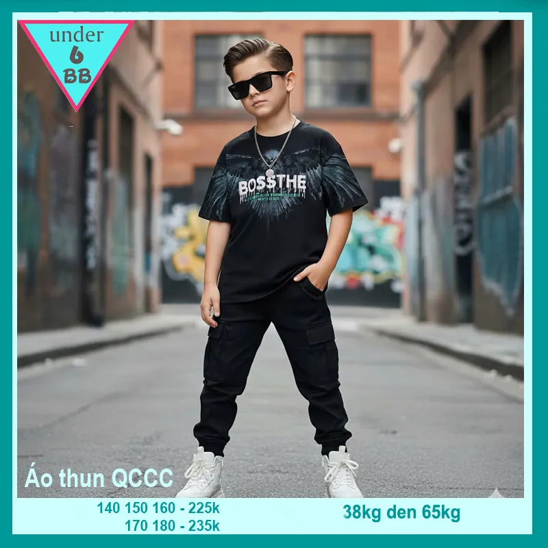 Áo thun bé trai cao cấp thêu chữ BOSSTHE phong cách thời trang cá tính cho bé diện đi chơi , đi du lịch
