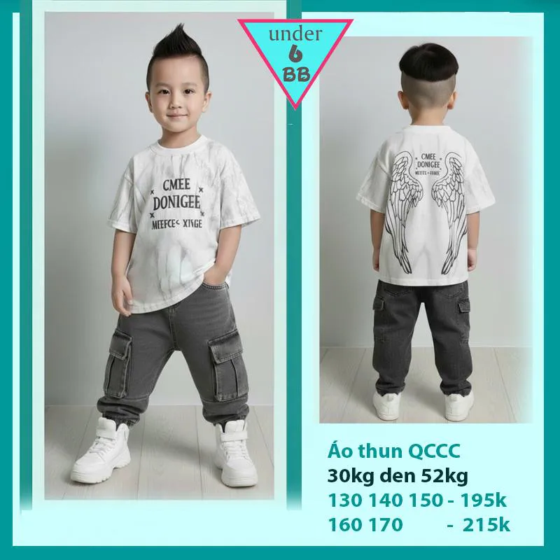 - Áo thun bé trai cho bé 30kg đến 52kg