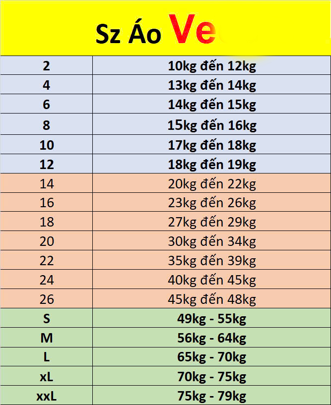 KHÁCH HÀNG VUI LÒNG THAM KHẢO CHỌN SIZE CHO BÉ THEO BẢN SIZE SAU