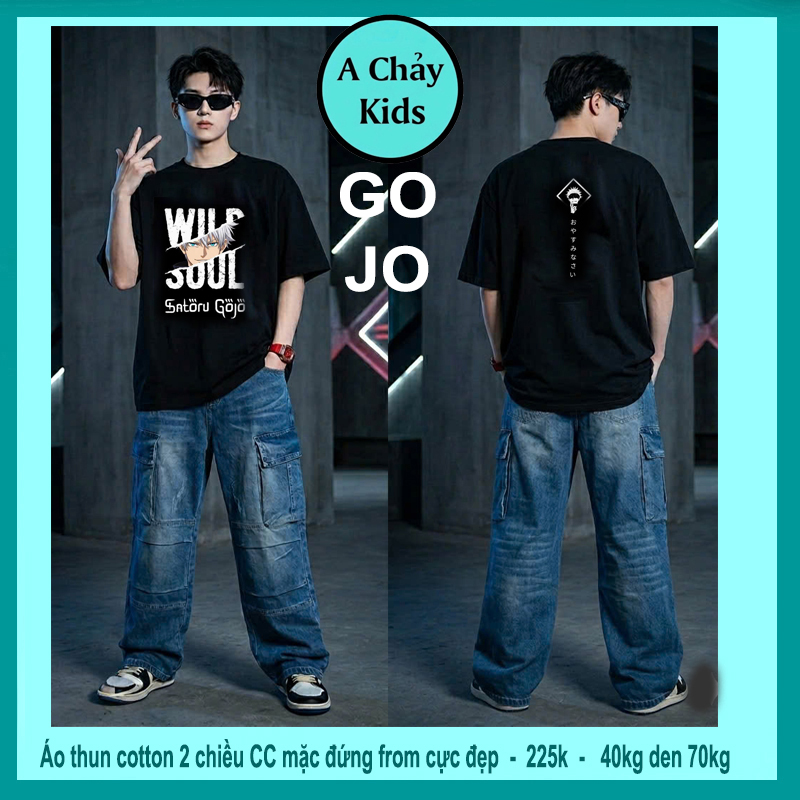 Áo thun cotton bé trai in hình anime Gojjo siêu ngầu cho bé lớn diện đi chơi , đi du lịch