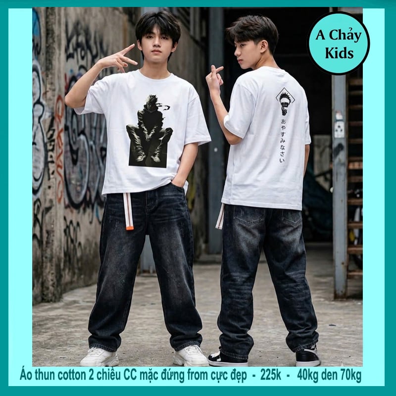 Áo thun cotton bé trai in hình anime Gojjo siêu ngầu cho bé lớn diện đi chơi , đi du lịch