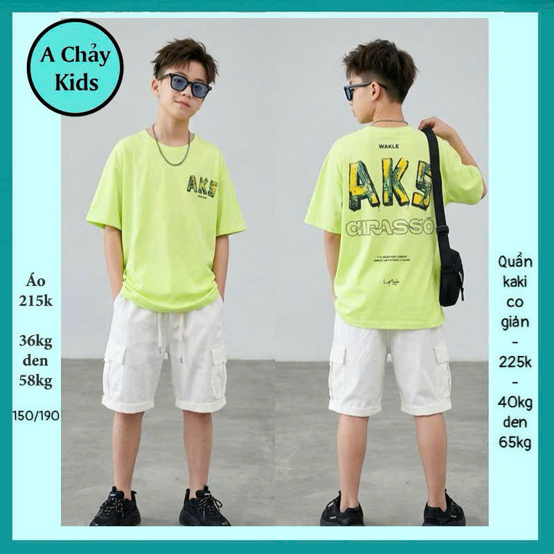 Quần áo bé in chữ AKS mang phong cách thời trang hàn quốc cá tính cho bé đi chơi , đi du lịch