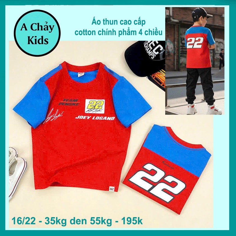 Áo thun bé trai cao cấp in số 22 phối màu cá tính cho bé đi chơi , đi du lịch