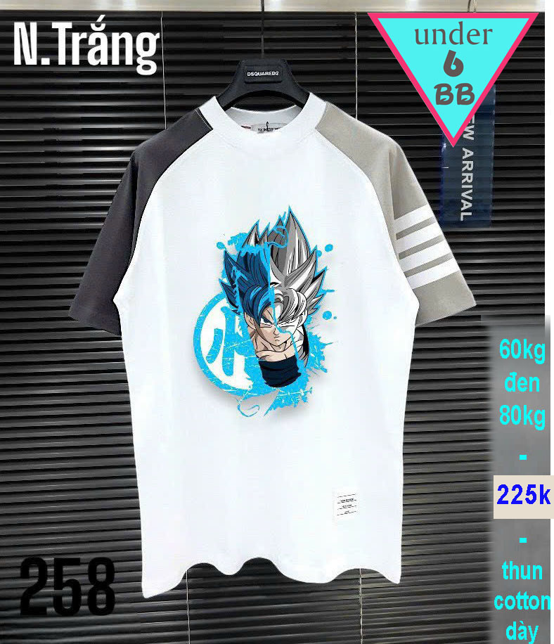 Áo thun bé trai cao cấp in hình Songoku phối tay lắp lăn phong cách cá tính cho bé đi chơi , đi học