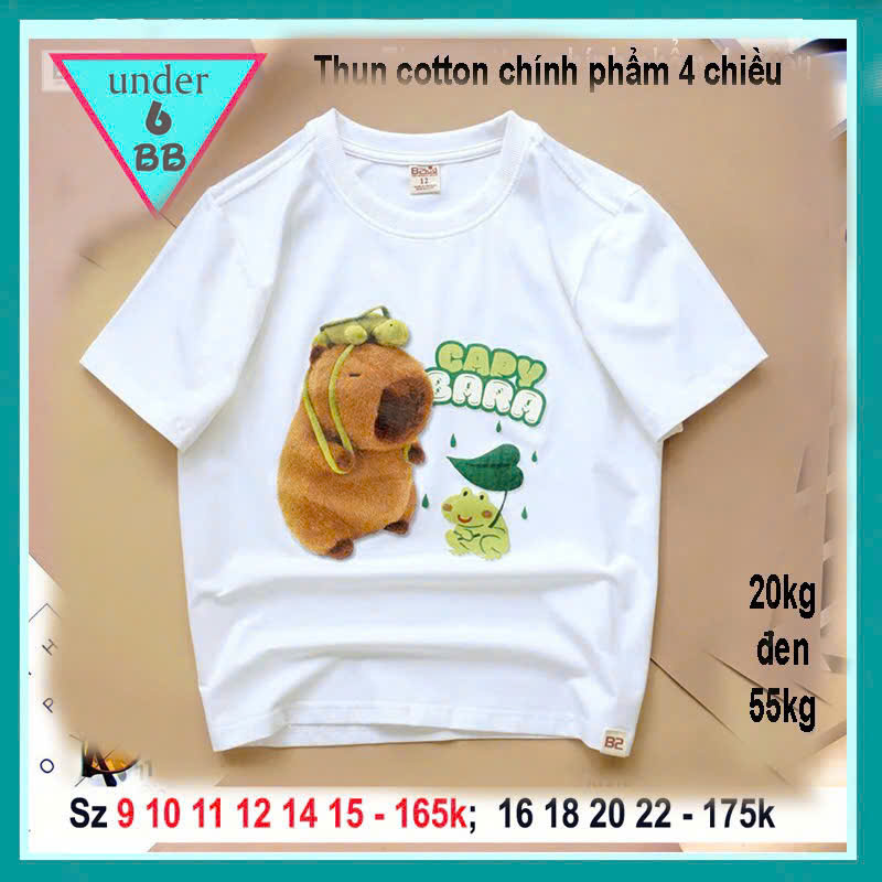 Áo thun bé trai cao cấp tay ngắn in hình Cappybara Đội Nón Rùa phong cách cá tính cho bé đi chơi , đi học