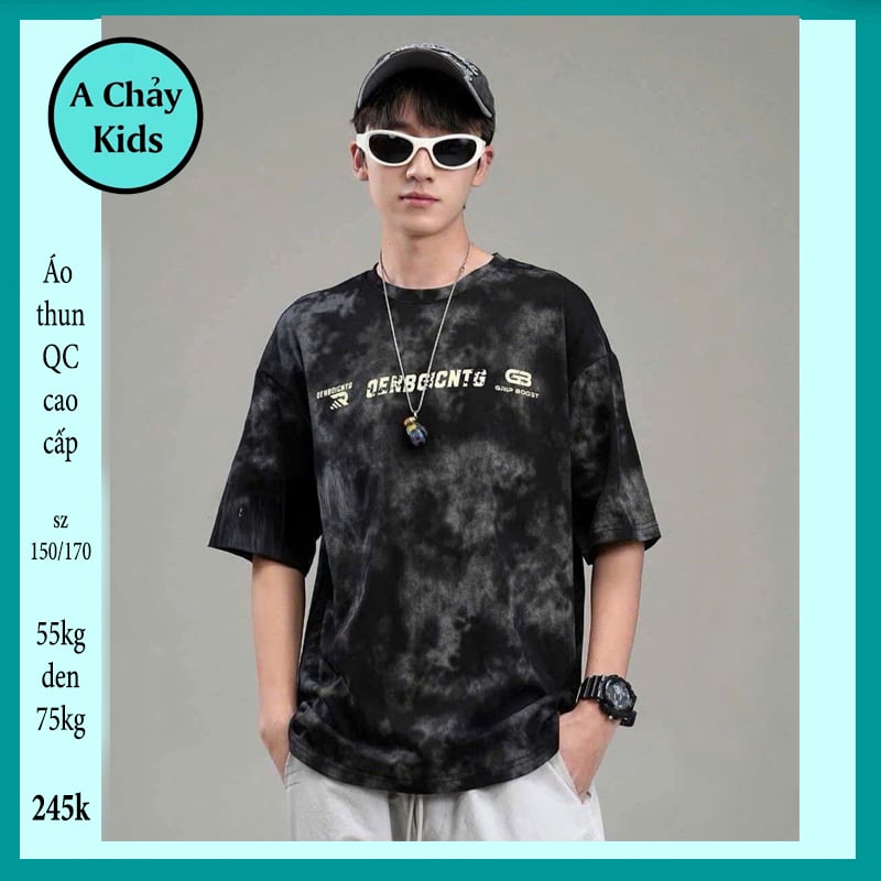 Áo thun bé trai cao cấp in chữ phối màu loang phong cách cực ngầu dành cho bé lớn diện đi chơi , du lịch