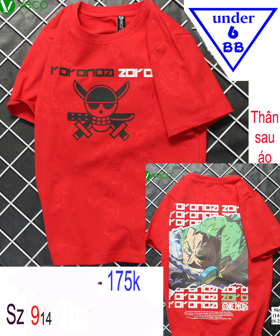 Áo thun bé trai cotton tay ngắn in hình anime Roronoa Zoro phong cách cá tính cho bé đi chơi , đi học