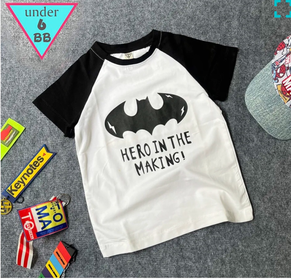 Áo thun tay ngắn in họa tiết logo siêu nhân người dơi - Batman phong cách cá tính cho bé trai đi chơi , đi học