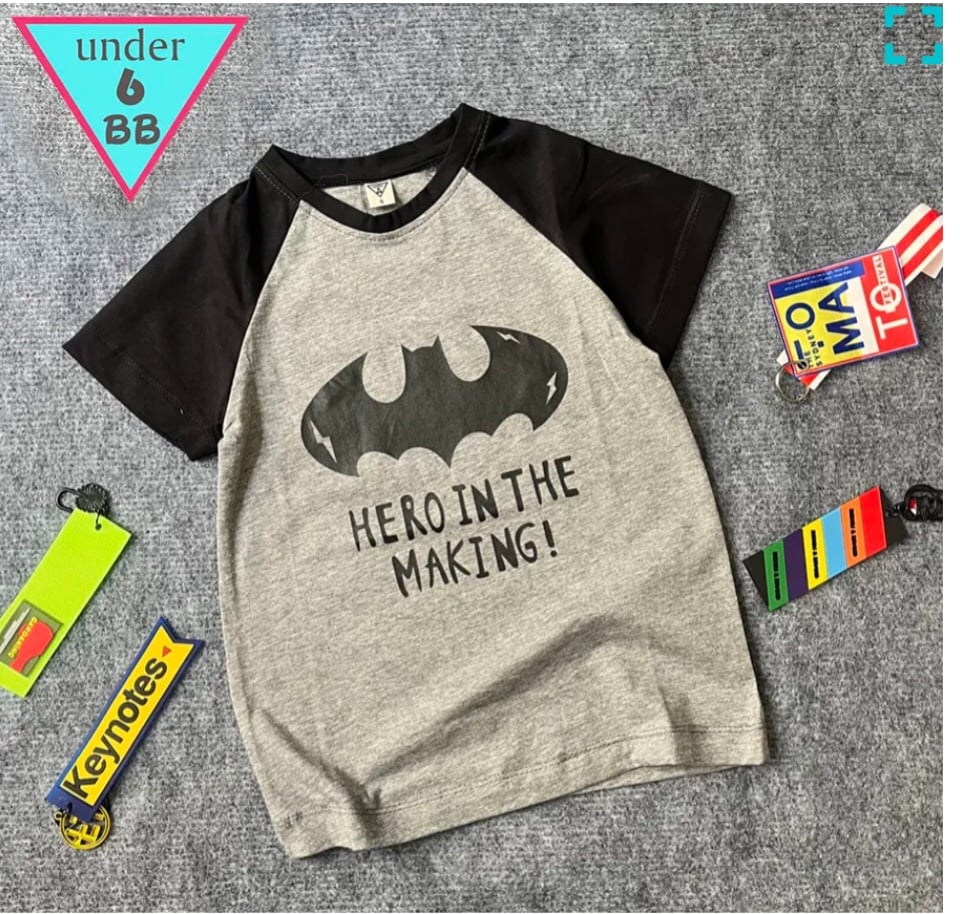 Áo thun tay ngắn in họa tiết logo siêu nhân người dơi - Batman phong cách cá tính cho bé trai đi chơi , đi học