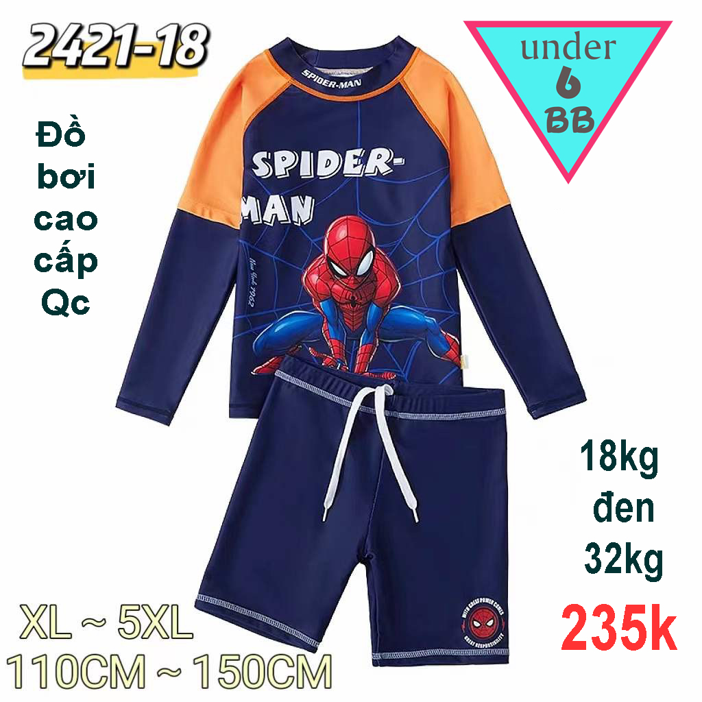 Đồ bơi bé trai tay dài in 3D hình siêu nhân người nhện - Spiderman cho bé đi bơi , đi tắm biển ( đồ bơi rời)