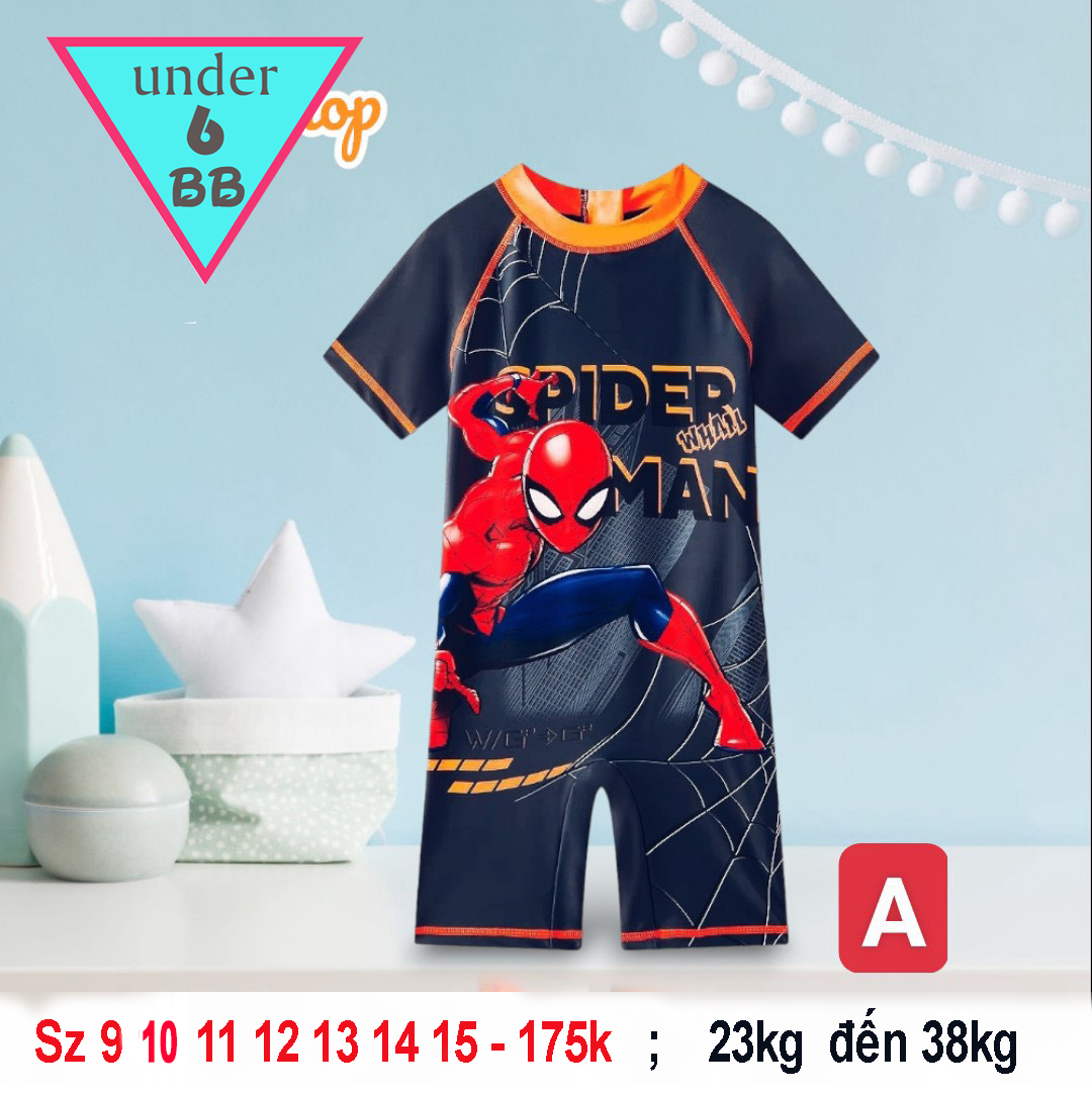 Đồ bơi bé trai tay ngắn in 3D hình siêu nhân người nhện - Spider man cho bé đi tắm biển , đi bơi