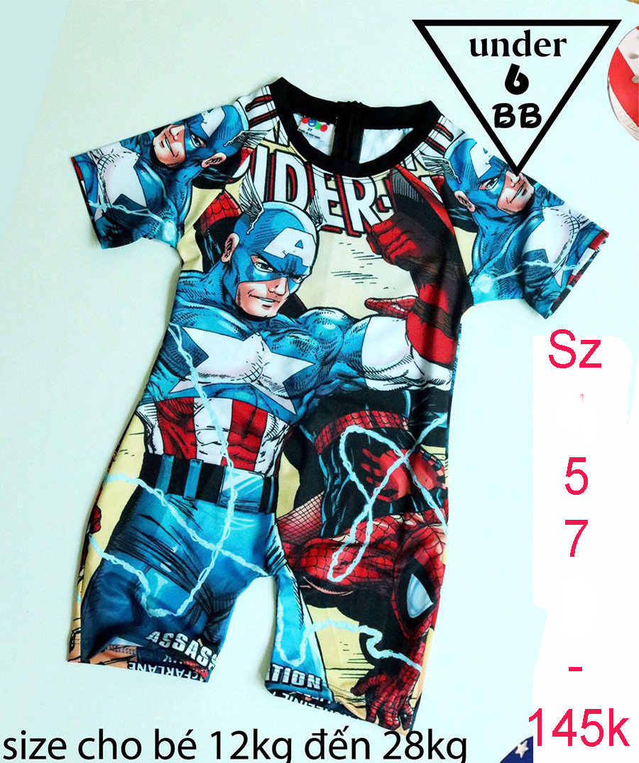 Đồ bơi bé trai tay ngắn in 3D hình Đội trưởng mỹ - captain america cho bé đi bơi , đi tắm biển ( Đồ bơi liền )