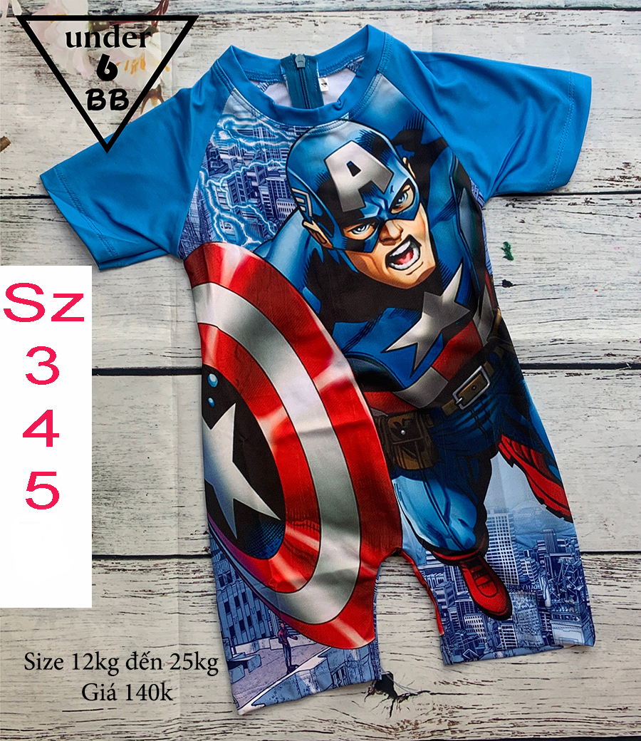 Đồ bơi bé trai tay ngắn in 3D hình Đội trưởng mỹ - captain america cho bé đi bơi , đi tắm biển ( Đồ bơi liền )