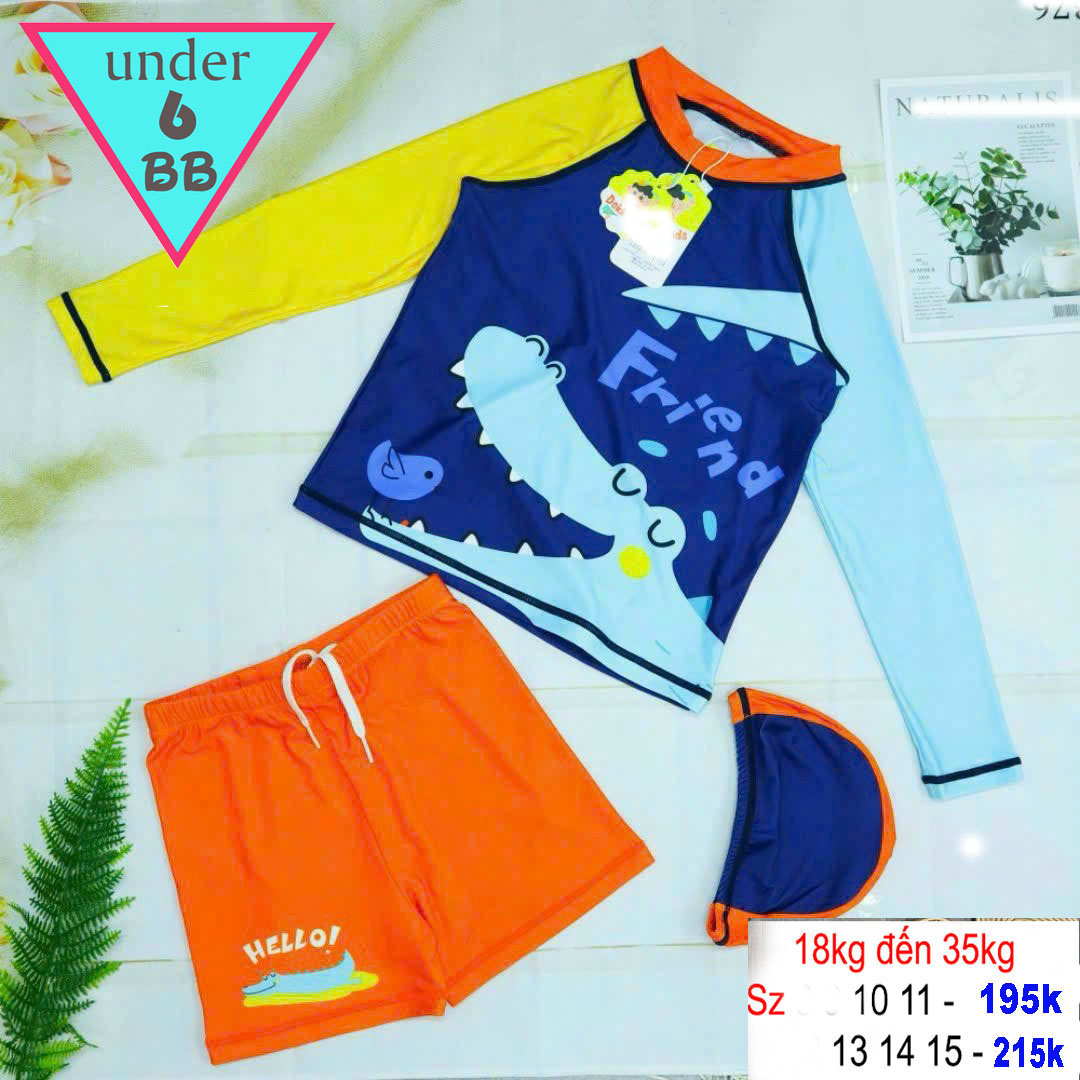 Đồ bơi bé trai tay dài in 3D hình Cá sấu siêu đáng yêu cho bé trai đi bơi , đi tắm biển ( Đồ bơi rời )