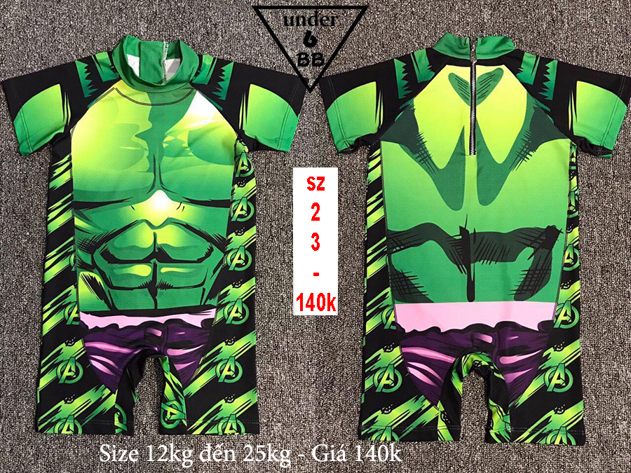 Đồ bơi bé trai tay ngắn in 3D hình Khủng Lồ Xanh cho bé đi biển , đi bơi ( Đồ bơi liền )