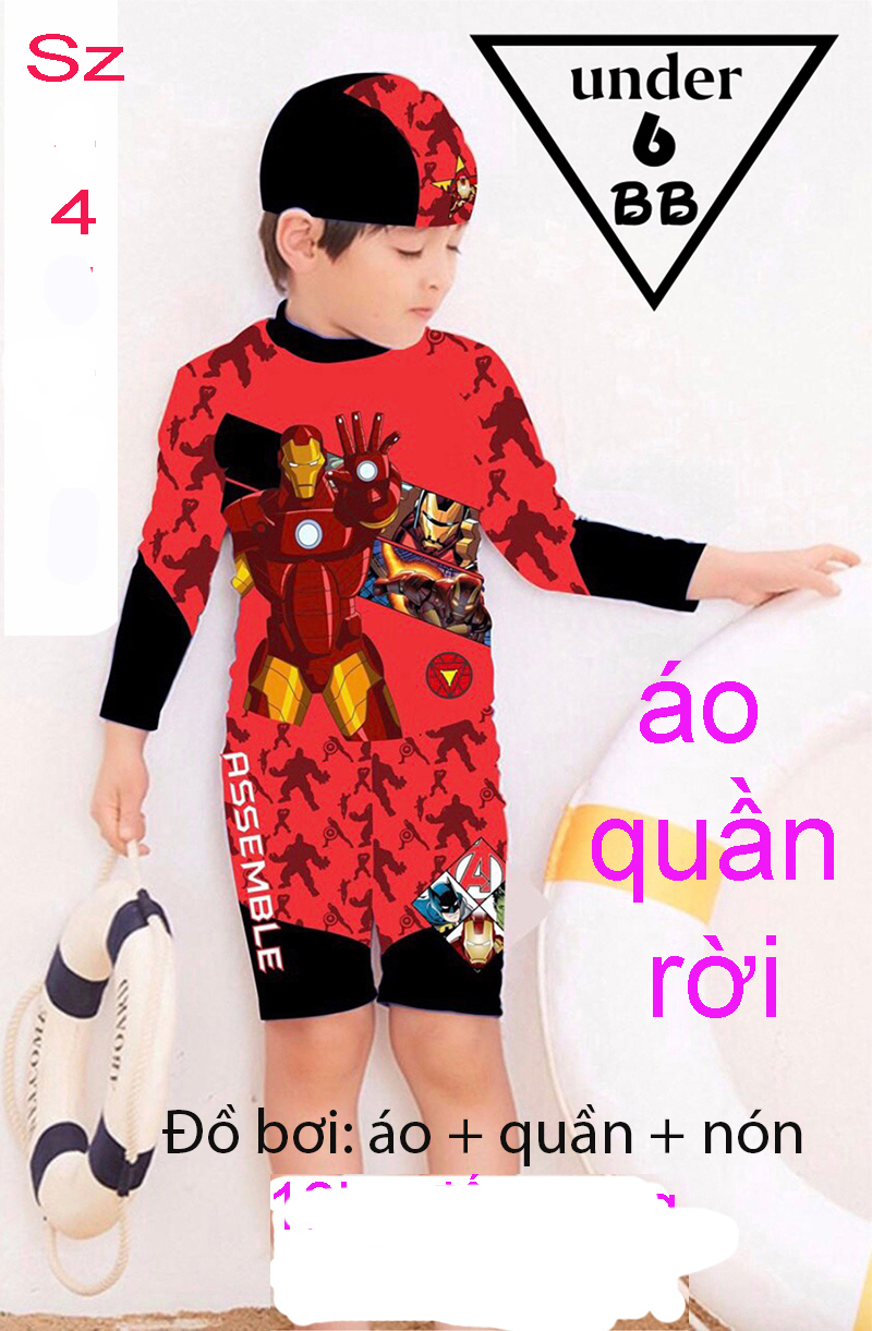 Đồ bơi bé trai tay dài in 3D hình siêu nhân Iron Man cho bé đi bơi , đi biển ( Đồ bơi rời )