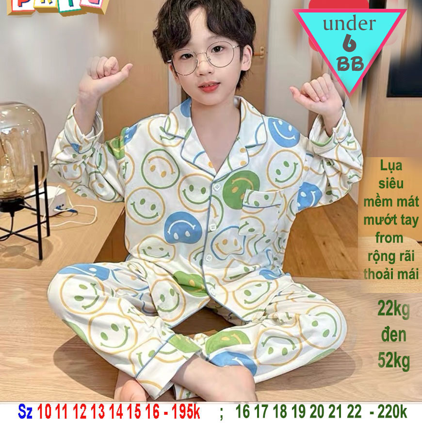 Đồ bộ bé trai tay dài pijama in họa tiết hình Smile dễ thương cho bé đi ngủ