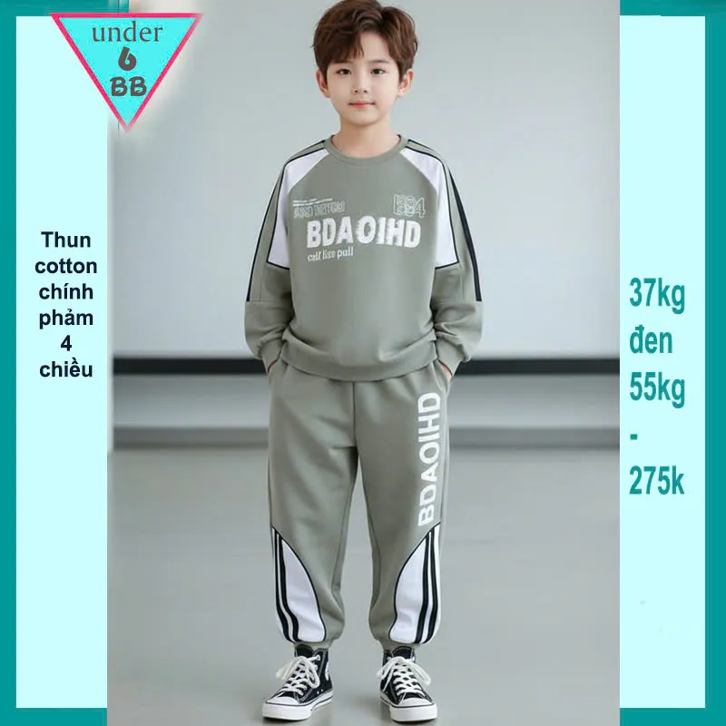 Đồ bộ bé trai tay dài cá tính in chữ BDAOIHD phối viền tay áo phong cách cực sang cho bé diện đi chơi , du lịch