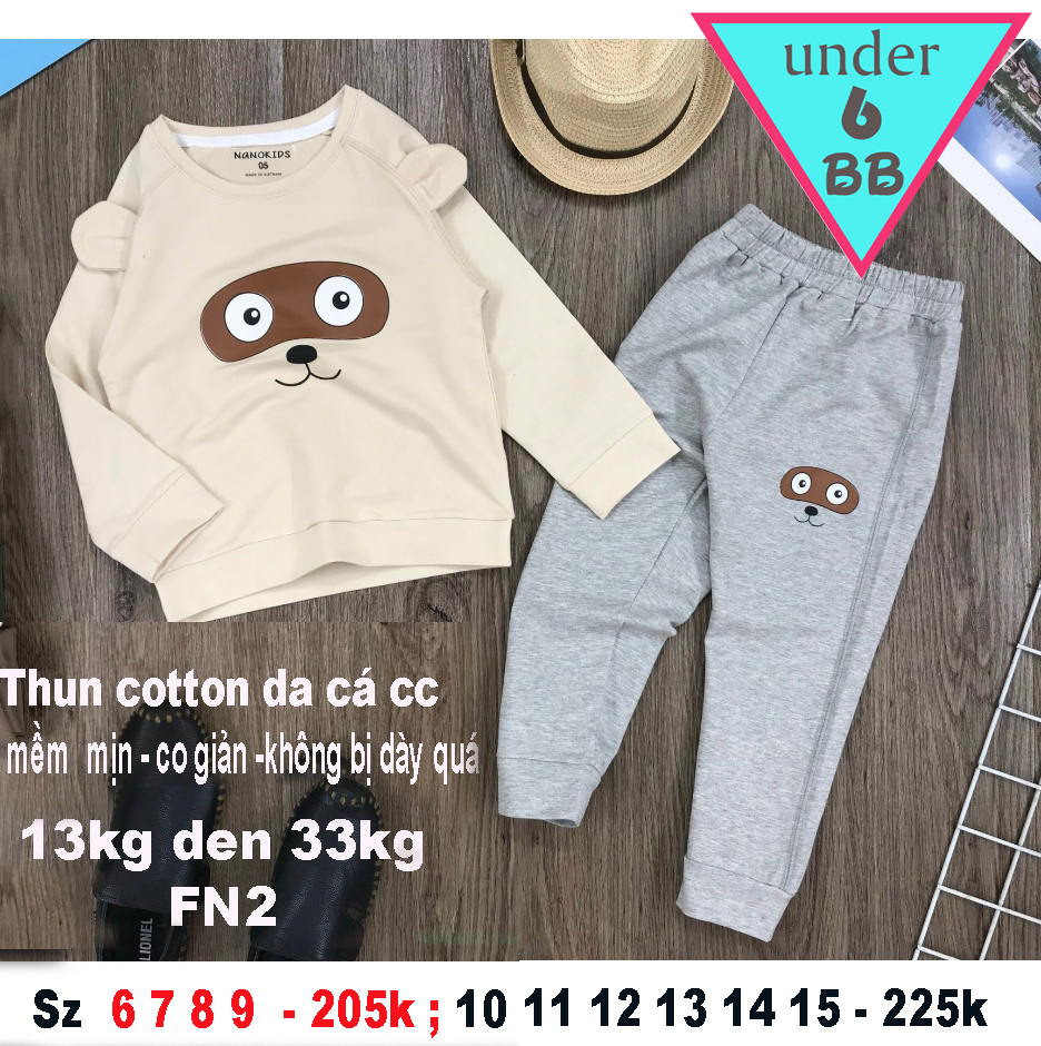 Bản size quần áo trẻ em, đồ bộ bé trai Under 6 Baby