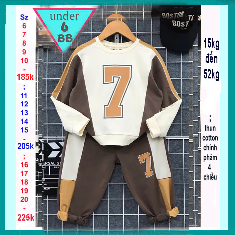 Đồ bộ bé trai tay dài cotton in số 7 tay phối màu cá tính cho bé đi chơi , đi học