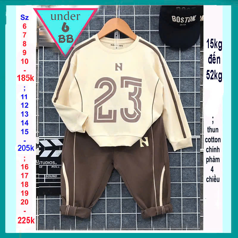Đồ bộ bé trai tay dài cotton in chữ N 23 phong cách cá tính cho bé đi chơi , đi học