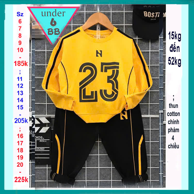 Đồ bộ bé trai tay dài cotton in chữ N 23 phong cách cá tính cho bé đi chơi , đi học