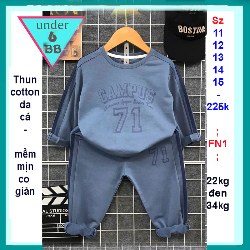 Đồ bộ bé trai tay dài cotton da cá thêu số 74 phong cách cá tính cho bé đi chơi ,đi học