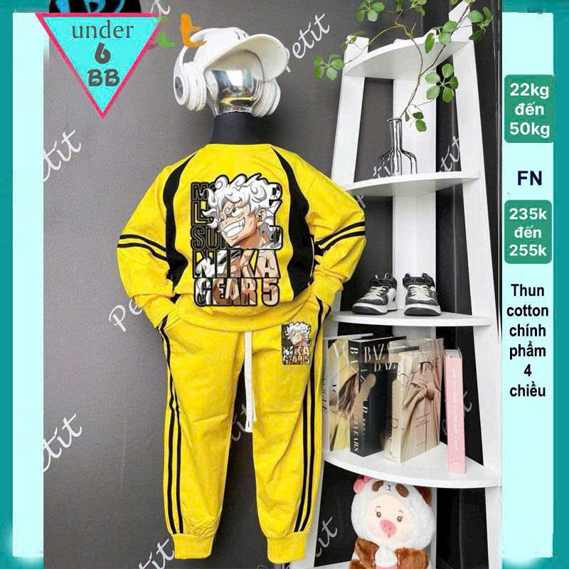 Đồ bộ bé trai tay dài hoạt hình in hình anime Luffy phối màu cực sang cho bé yêu diện đi chơi ,du lịch